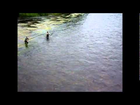 Salmón pescado por uno de los habituales del Narcea en una zona de fuerte corriente y con 11 metrazos de vara.
